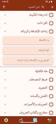 يحتوي التطبيق على ما يزيد عن ١١٠٠ سؤال متعددة الخيارات في أحكام التلاوة برواية حفص عن عاصم من طريق الشاطبية مصنفًا تحت ٢٧ تصنيفًا، كما يحتوي على اختبارات تفاعلة موزعة على ٤٠ مرحلة تزداد صعوبة تدريجيا، يتوجب خلال كل مرحلة اجابة السؤال في وقت محدد مما يجعل التعلم ممتع وشيق، يقوم التطبيق بحصر النتائج وعرض تقييم الأداء.