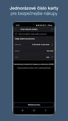 To enable this feature on wear OS devices, you must have activated Tatra banka application on your smartphone and enabled "Android Watch" option in the Application settings (this feature is not available in DEMO).