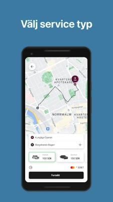 1.Öppna ride-halling-applikationen. 2.Ange din nuvarande plats och önskad destination.