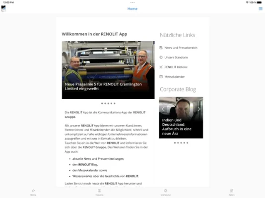 Mit unserer Team RENOLIT App bieten wir unseren Kund:innen, Partner:innen und Mitarbeitenden die Möglichkeit, schnell und unkompliziert auf alle wichtigen Unternehmensinformationen zuzugreifen und mit uns in Kontakt zu bleiben. Tauchen Sie ein in die Welt von RENOLIT und informieren Sie sich über die RENOLIT Gruppe.
