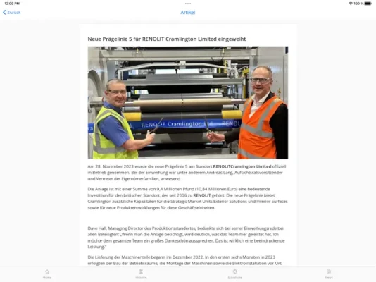 Des Weiteren finden Sie in der App auch: • aktuelle News und Pressemitteilungen, • den RENOLIT Blog, • den Messekalender sowie • Wissenswertes über die Geschichte von RENOLIT.