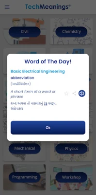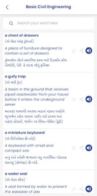 Our TechMeanings® App is a one of its kind English to English and English to Gujarati Engineering Dictionary App made especially for ease of understanding in Gujarati and reproducing the same in English. The App covers all 12 major subjects of Engineering, viz. Civil, Chemistry, Electrical, Electronics, Environmental Science, Graphics & Design, Mathematic-1, Mathematics-2, Mechanical, Physics, Programming and Workshop Technology, and will be extremely useful for students pursuing their careers in the field of Engineering.