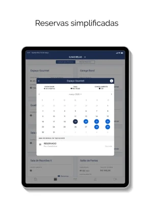 - reservas no salão de festas, mudanças e outras agendas,