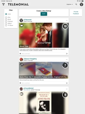 Find friends on Telemonial and see their thoughts on the latest books, movies, TV shows, podcasts, and albums. Telemonial offers a platform to find reviews from personal references and to track all your viewing/reading/listening history.