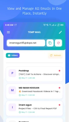 This app is built on the Mail.tm service, providing temporary email functionality with enhanced features and mobile-friendly interface.