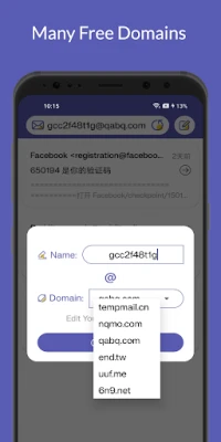 Keep your real inbox clean and secure. Temp Mail provides a temporary, anonymous, free, custom reusable email addresses at any time. It protects your real inbox from spam, unwanted newsletters, or questionable websites. It's perfect for registering on websites, verifying accounts (e.g. Facebook, Twitter, Instagram, tiktok, WhatsApp, Telegram, etc.) without worrying about it becoming invalid, or testing apps without using your personal email.