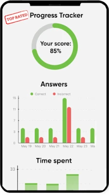 - Train in real exam conditions with randomized questions and a countdown timer.