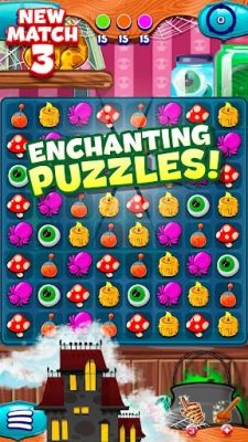 Apprentice Witch puzzle match-3 Halloween puzzle game brew magic potions & charms in this adventure of sorcery and witchcraft with amazing graphic that come with a Halloween twist