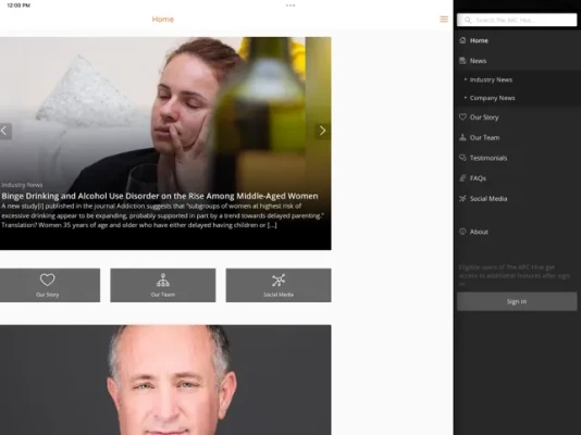 The ARC Hive app welcomes all users with a company overview, mission and vision, states served and more. At Aware, home is where recovery lives.