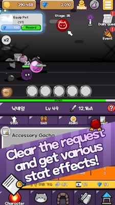 - Get rid of the monsters the witch has made so far and move on. - Strengthen the Dust and Get various equipment and skills. - Get the items you need through each dungeon every day! - Set the ability that the current situation. - Spawn various cute pets! - Dust is growing just by leaving phone on!