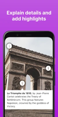 Add text and audio notes, links, quizzes, Google apps, and other embeds from websites, images and video to hotspots. Add transitions from one scene to another, change icons, adjust colors, even record audio directly into a tag or so that it plays when the image is viewed!