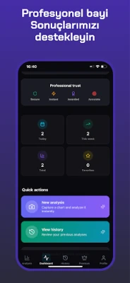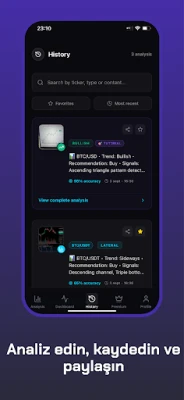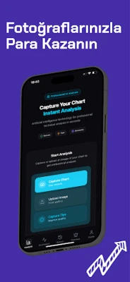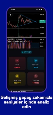 Uygulama, profesyonel traderların erişiminde olan, binlerce grafik üzerinde eğitilmiş yapay zeka modelleri, desen tanıma ve gelişmiş teknik analiz algoritmalarını bir araya getirerek size daha önce yalnızca profesyonel traderların ulaşabildiği doğru içgörüler sunar.