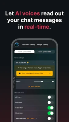 Let your stream read chat messages out loud with a variety of voice options and settings.