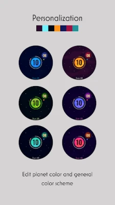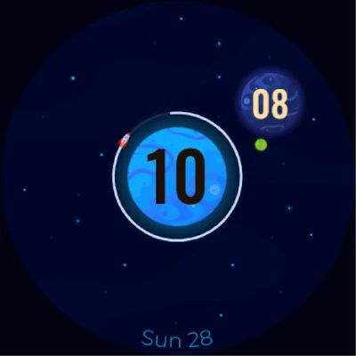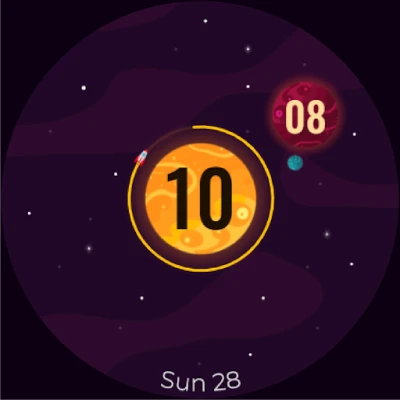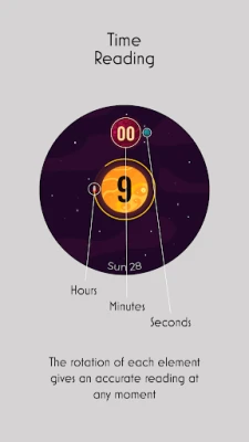 At the center of the design, there's a bright sun showing the hours, giving off a warm vibe. A spaceship orbits precisely, completing a lap every hour.