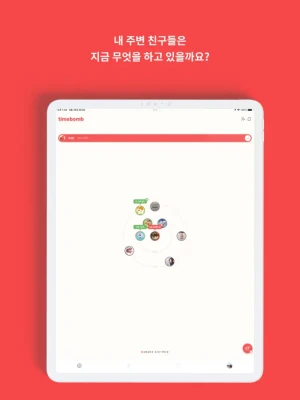 도보 30분 이내에 있는 친구들과의 거리를 실시간으로 확인하고 원하는 시간에 사라지는 타임밤으로 서로의 상태를 재미있게 공유하며 새롭게 소통해요!