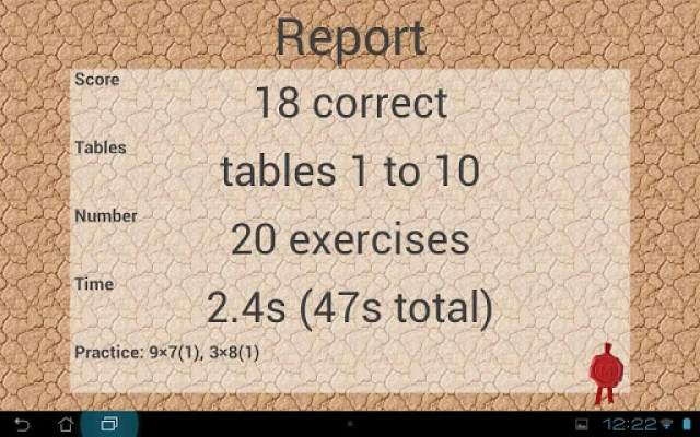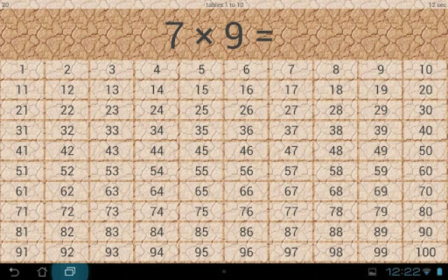 The app also supports a test mode: all 100 multiplications will have to be answered. Just like at school, time is also recorded.