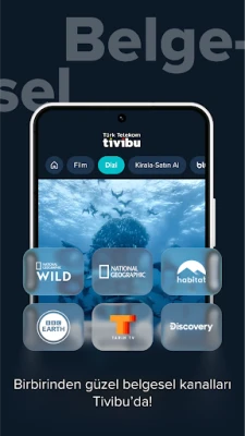 Belgesel; Nat Geo, Nat Geo Wild, Habitat, Tarih TV, TRT Belgesel, Viasat History, Discovery Channel, Love Nature, BBC Earth, ID gibi yerli ve yabancı belgesel kanalları ve içerikleri bir arada.