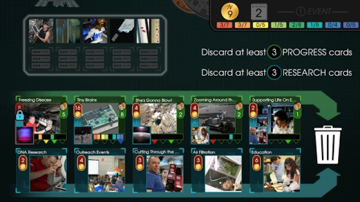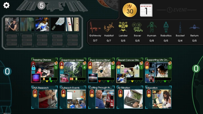 In this card based game, this is your space program. You determine what research to fund on the space station and what projects you want to fund back on Earth. Conducting research on the orbital laboratory can reduce the cost of some projects or give you the ability to do others. Results from the projects you fund determine you budget for the next year. Everything you do affects the outcome of your eight part program. But beware, events can happen that can influence that outcome. Will you be able to complete all of your eight mission objectives in four short years?