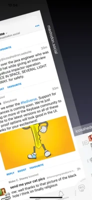 - It lets you be as many people as you like. You can easily switch between accounts with a flick of your finger. It even lets you read timelines on instances you are not logged in to!