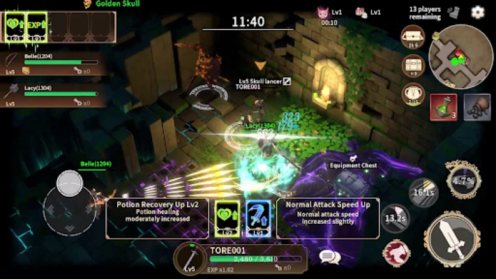 Dungeons are filled with various treasure chests and numerous monsters guarding valuable loot. Defeating monsters grants experience points, allowing you to level up. Work together with your allies to defeat monsters and safely open treasure chests.