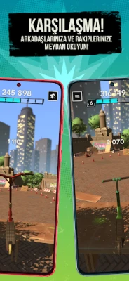 ÇEŞİTLİ OYUN MODLARINDA KENDİNİZE MEYDAN OKUYUN ve rütbe atlayın! Parlak kupalar kazanın ve rekorlarınızı dünyadaki veya kendi bölgenizdeki diğer oyuncularla karşılaştırın. Diğer oyuncuların performanslarına göz atarak becerilerinizi öğrenin ve geliştirin. Görkem, fakie sürüş, scooter flips, rider flips, grinds ve diğer birçok numarada ustalaşacak kadar yetenekli olanları bekliyor. O halde ne bekliyorsunuz?
