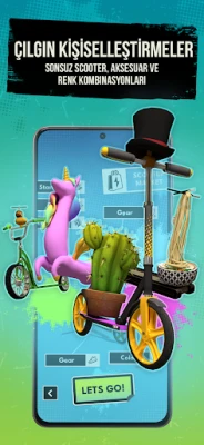 TASARLAYIN, DONANIMINI DEĞİŞTİRİN ve yüzlerce renk arasından seçim yapabileceğiniz özelleştirilebilir Scooter'ınızı bir araya getirin. Ek donanım, destansı ve efsanevi scooter ve çok daha fazlasını kazanın ve kilidini açın.