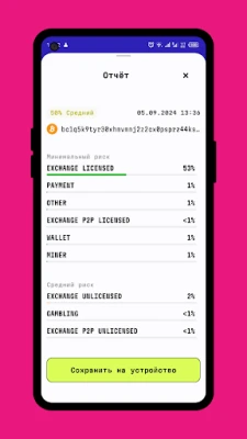 Make sure your counterparties are "clean" with the built-in AML check feature. It is also important to keep track of your address. After ordering the service, an AML report with a detailed description of the risk level will be available to you.