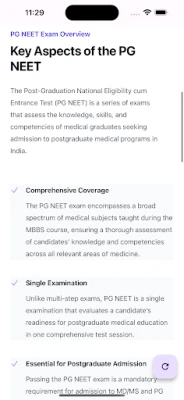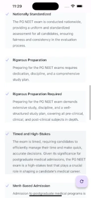 Our platform delivers a wide array of practice questions, in-depth explanations, and instant feedback to ensure comprehensive understanding and mastery of essential medical topics. PG NEET helps students pinpoint their strengths and areas needing improvement, optimizing their study time for maximum efficiency.