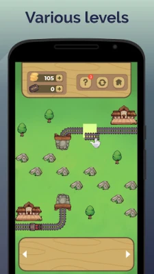 The gameplay is simple: The railroad has not been built yet. Just drag and drop the pieces to connect the railway tracks. But don't be fooled by the simplicity of the game – as you progress, you'll encounter obstacles like rocks and rivers that will make it harder to connect the tracks. Lay rails between stations, avoid obstacles, find the shortest route for train and complete the construction. Get coins for transporting goods. Buy trains and additional wagons to increase your profits. Create the shortest route for train. Build a railway.