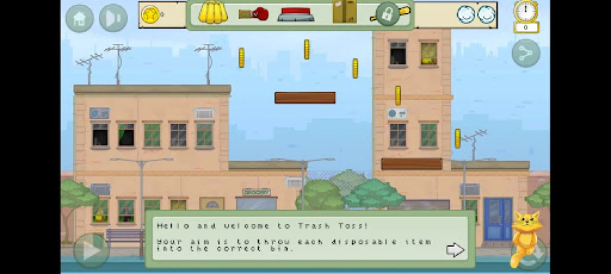 "Trash Toss" is an immersive single-player physics-based puzzle game that challenges players to creatively sort recyclable materials into the correct bins using a variety of interactive objects. Navigate through diverse levels, strategically place trampolines, springboards, and more, and unleash your problem-solving skills to conquer each unique recycling challenge. Immerse yourself in captivating graphics, earn rewards, and gain valuable environmental knowledge, all while having fun making an eco-conscious impact. Play "Trash Toss" and experience the joy of rumbling with recyclables!