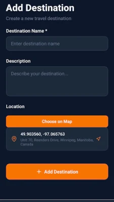 Each destination includes location, images, and any info you want to save