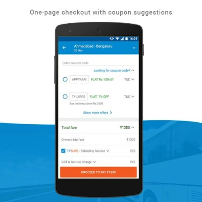 Sign up on our app to experience hassle-free online booking services across 150,000+ bus options with 3,000+ bus operators in India. Get ready to unlock exclusive additional loyalty discounts and TYSURE assurance against cancellations.