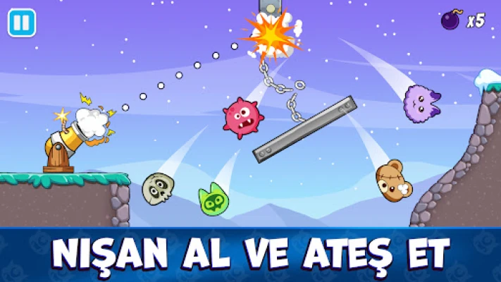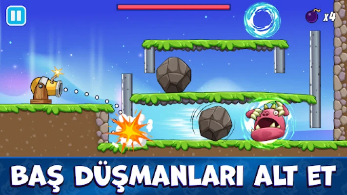 Dev bir savaş topuyla canavarları havaya uçurabildiğin heyecan dolu bir maceraya hazır ol! Çeşitli bulmacalarla dolu bu oyunda zekice davranman ve önce düşünüp sonra ateş etmen gerek. Atışların ise sınırlı sayıda. Akıllıca davran ve tüm canavarları alt etmek için becerilerini konuştur!