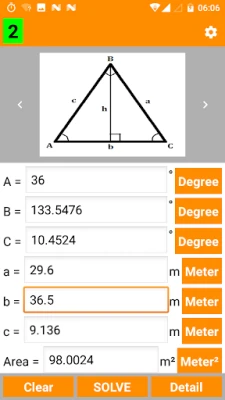 • Calculate Side, Angle, Area, Height and Parimeter.
