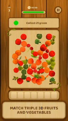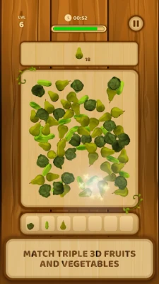 Match triple 3D fruits and vegetables and sort out all of them in this new matching game! Created in the best traditions of matching games, this 3D match game invites you to embark on a super fun sorting adventure.