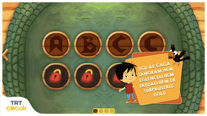 Ege ile Gaga-Tangram'da çocuklar, zorlu tangram parçalarını bir araya getiriyor, zihin egzersizi yapıyor, hayal dünyalarını zenginleştiriyorlar ve görsel algılarını geliştiriyorlar.