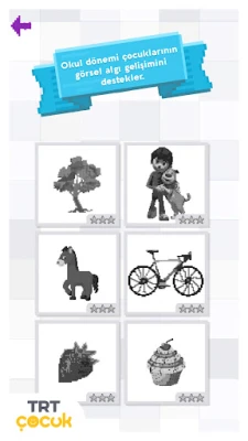 Çocukların aileleri ile birlikte kaliteli, eğlenceli ve eğitici zaman geçirebilmeleri için tasarlanmıştır. Bu sebeple çocuğunuzla birlikte oynamanız tavsiye edilir. Bu şekilde çocuğunuzun TRT Çocuk Piksel Boyama'dan azami derecede fayda sağlamasını ve eğlenmesini sağlamış olursunuz.