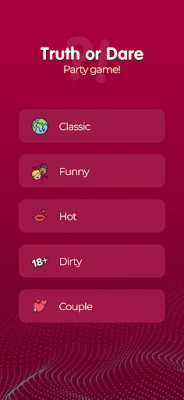 Get ready for the most thrilling Truth or Dare game! Perfect for parties, gatherings, or just a fun night in. Our app brings you an endless array of questions and dares to keep the excitement alive. Choose from a variety of categories to match the vibe of your group.