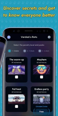 ⚡ Personalized penalties: Choose how many drinks should be taken as punishment. From 1 to 3 drinks, 2 to 4, or 3 to 5 shots.