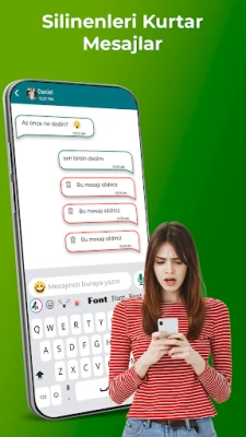 Silinenleri kurtar, metni ve yakın zamanda silinen tüm görünmeyen mesajlaşma mesajlarını kurtarmak için en iyi uygulamadır. Bir kişi gönderdiği görünmeyen mesajını silerse anında bildirim alırsınız. Sadece uygulamayı açın ve silinen metni görüntüleyin.