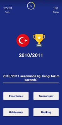 Beşiktaş tarihinin en golcü futbolcusu kim? Fenerbahçe'nin Avrupa maçlarına ne kadar hakimsin? Galatasaray'ın efsanelerinle aran nasıl? Trabzonspor hangi sezonlarda şampiyon oldu? Bu konular ve ligimizle ilgili diğer konulardaki bilgilerini ölçmek istiyorsan bu uygulama tam sana göre!