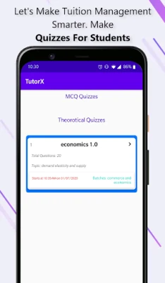 TutorX is that missing thing that most of our favorite Tutors need to grow their tuition enormously. Why have two apps for managing and advertising your tuition, when you can do all in one in TutorX. You can manage your tuition effortlessly in multiple devices, and never fear of losing any data. You can evaluate your students with exciting quizzes directly on the app, and can lose the burden of evaluating them, as TutorX does it for you. Not only this, new students can contact you directly through the app, and can get to know you better. Those students who don't know about you can also get the exposure of your tuition . Overall this is all you need and we provide all for free. So why waiting, try it now.
