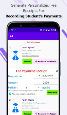 5. Record Students Payments, and also send a detailed message directly to student's/parents device.