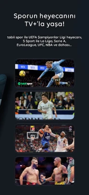 Canlı TV izleyebileceğiniz TV+’ta kaçırdığınız programları geri sararak kaydedebilir ve istediğiniz zaman izleyebilirsiniz. Ulusal kanallar, müzik kanalları ve EBA TV başta olmak üzere onlarca TV kanalını canlı izleyebilirsiniz. Öte yandan spor tutkunları için futbol ve basketbolun en iyilerinin yer aldığı NBA ve en heyecanlı Tenis turnuvaları da TV+’ta!”