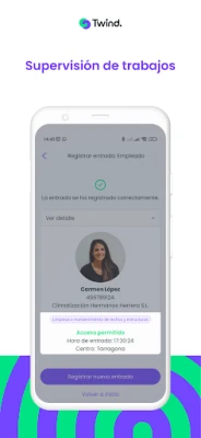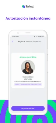 Accede a la información del personal externo incluso sin conexión a internet. Twind obtiene periódicamente la información de nuestros servidores y la guarda en su memoria para que puedas verificarla en modo offline.