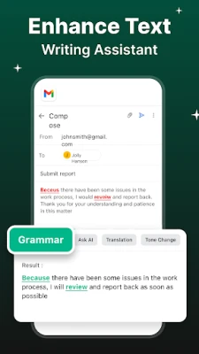 AI-based spelling and grammar checker is the ultimate writing companion, powered by advanced AI technology to supercharge your typing and communication. Whether you're writing emails, texts, or social media posts, our AI-driven app offers instant grammar correction, rephrasing suggestions, and tone adjustments to ensure your content is clear, professional, and engaging.