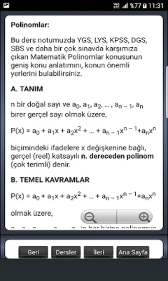 TYT ve AYT ye hazırlanıyorsanız, kpss sınavı matematik konularını arıyorsanız ya da lisede matematiğin tüm konu özetleri formülleri elimin altında bulunsun istiyorsanız doğru uygulamadasınız. Uygulamamızın içinde tüm matematik konu anlatımları özet halinde bulunmaktadır. Sizler için özenle hazırlanan ve içerisinde yüzlerce formül ve konu anlatımı içeren uygulamamız sayesinde evde, okulda, otobüste matematik kaynaklarınız sürekli yanınızda olacak ve her yerde ders çalışabileceksiniz. Ayrıca uygulamamızın içinde fizik, kimya ve biyoloji konularına bağlantılar da bulabilir, diğer uygulamalarımızı indirerek tüm çalışma notlarınızı yanınızda taşıyabilirsiniz. TYT ve AYT ya da KPSS matematikten artık korkmanıza gerek kalmayacak.