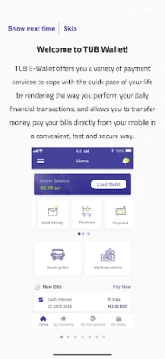 • Load: load your wallet from your UB account instantly.