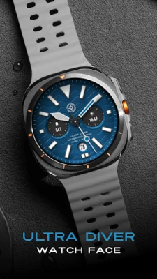 Inspired by classic analog dive watches, the Ultra Diver watch face for your Wear OS smartwatch offers extensive customization, including multiple color options, three watch hand styles, and various textures for a truly personalized look.