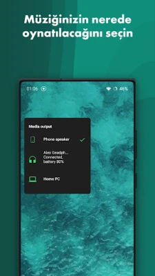 ✓ Medya çıkışı ayarı: Bağlı Bluetooth cihazlarından müziğin hangisinde çalınacağını seçin. Canlı altyazı düğmesi kullanılabilir.